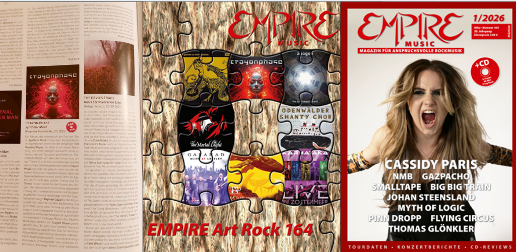 Alongside Eclipsed,Empire magazine stands among the absolute top print publications in the world of progressive rock in Germany. All the more thrilled — and truly honored — we are to not only receive a positive review, but also to be featured on their in-house sampler!